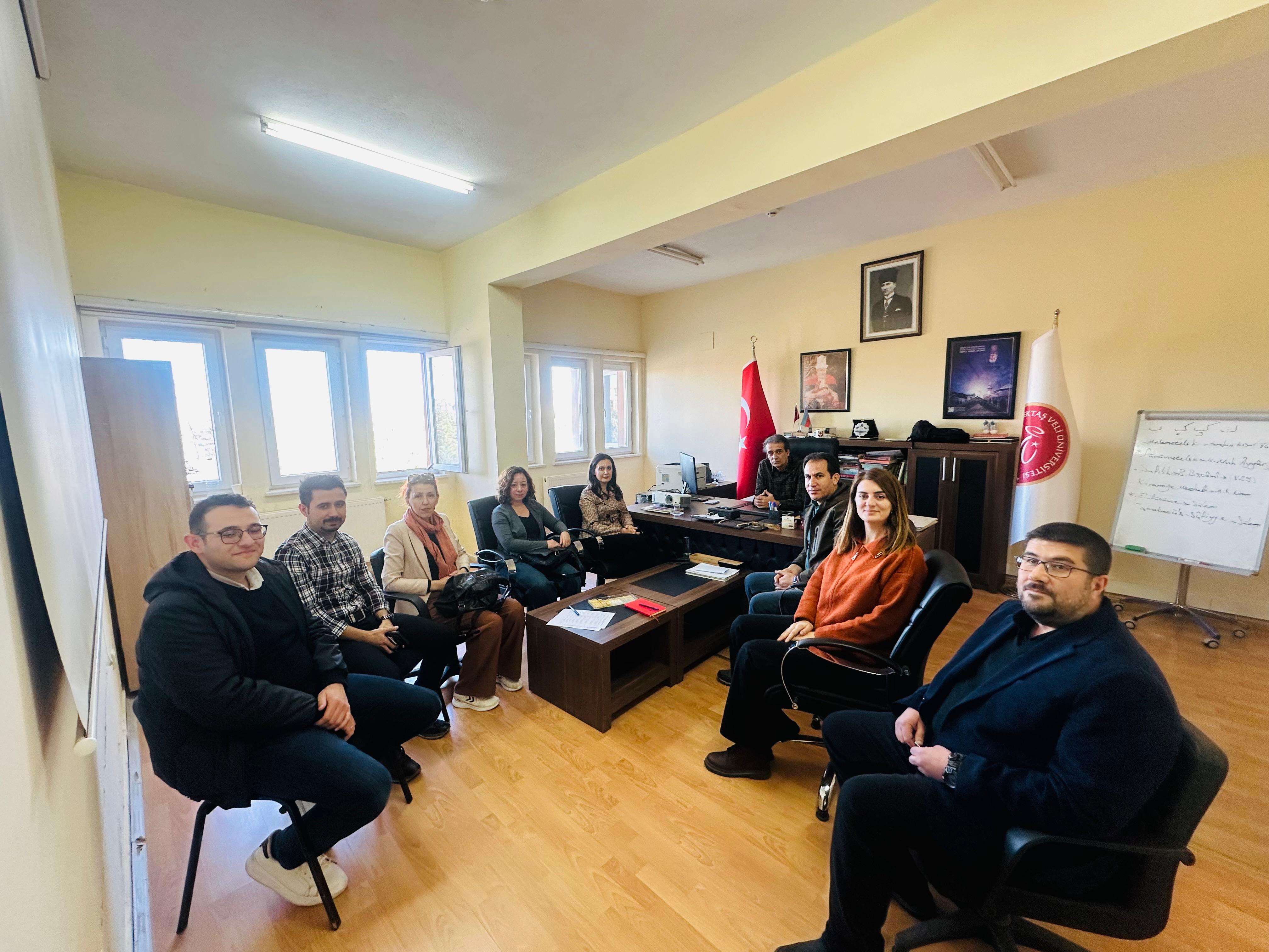 İç paydaşlarımızla bilimsel faaliyetlerin arttırılması konusunda görüşlerinin alındığı toplantıda, aynı zamanda NEVÜ Hoca Ahmed Yesevi, Hacı Bektaş Veli İhtisas Kütüphanesi’nde ders işlemek vasıtasıyla kütüphanenin fiziksel şartlarından faydalanılması ve kütüphanenin zenginleştirilmesi adına kitap temin edilmesi konuları üzerinde bilgi alışverişinde bulunuldu.
